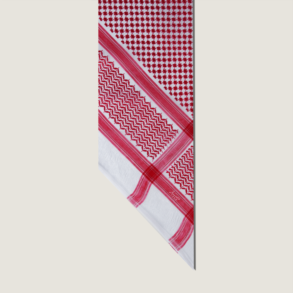 - اللون: أبيض وأحمر بنقشة تقليدية راقية.